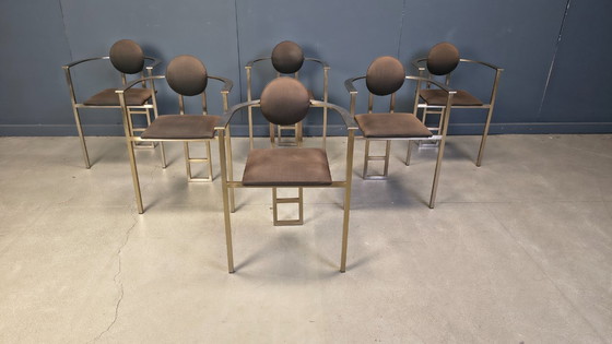 Set of six elegant dining room chairs manufactured by Belgochrom.