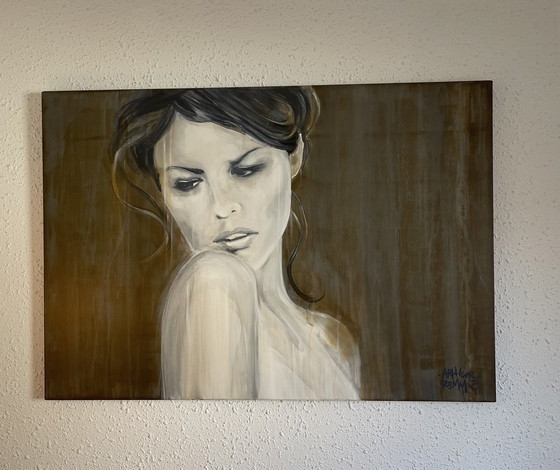This exquisite oil painting by Arthur Remmig captures a moment of introspection and elegance. The subtle interplay of brown, white, and grey tones creates a serene and contemplative atmosphere, making it a perfect addition to any sophisticated interior.