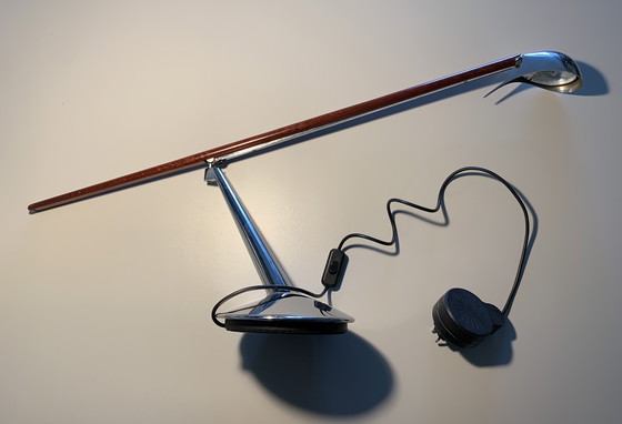 Introducing the Pradina Teca desk lamp, a sophisticated blend of modern design and functionality. This lamp features a sleek metal base paired with a beautifully crafted wooden arm, offering a striking contrast that enhances any workspace.