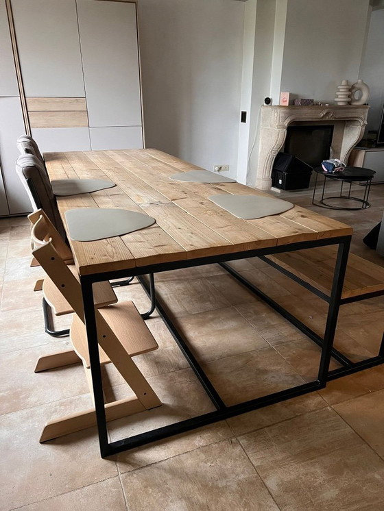 Experience the timeless elegance of this scaffolding wood table with a robust black metal frame, designed by Pure Wood Design. With a generous length of 260 cm, this table offers ample space for cozy dinners and family gatherings. The natural wood pattern adds a warm and inviting ambiance to any dining room, while the sleek metal frame provides a modern accent. The matching bench completes the look and provides additional seating without compromising style.