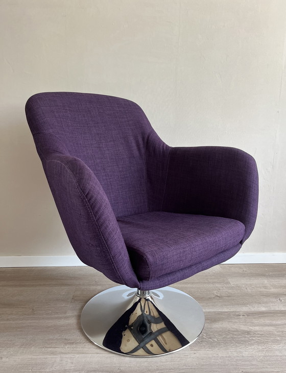 This purple retro designer recliner is a stylish addition to any interior. The chair is upholstered in a high-quality textile fabric and has a sturdy metal base, providing both comfort and stability. The retro design makes it an eye-catching piece that fits into both modern and classic settings. Ideal for relaxation and comfort, this armchair provides a perfect place to relax after a long day.