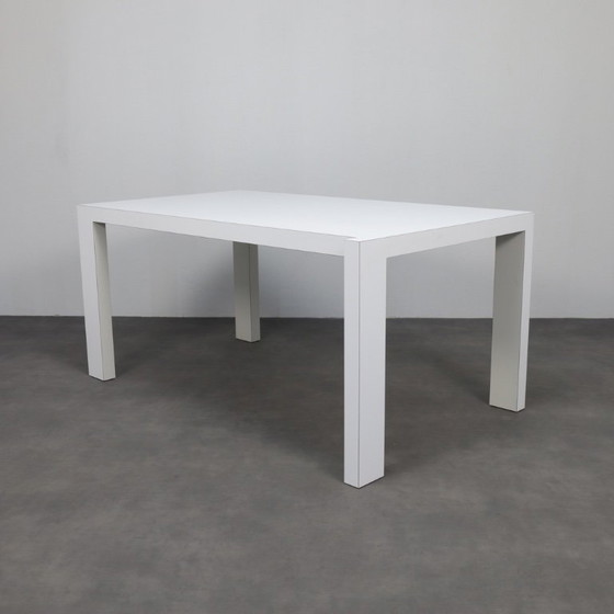 Designed by Italian artist and designer Giampaolo Babetto for the Dutch manufacturer Pastoe, the “Quadro” table embodies minimalist precision and architectural clarity. Executed in lacquered wood with a perfectly proportioned rectangular top and sharply defined legs, the piece reflects Babetto’s background in goldsmithing—where geometry, proportion and light are treated with equal importance. The table’s visual purity and balanced construction make it both sculptural and serene, aligning with Pastoe’s enduring ethos of functional refinement.