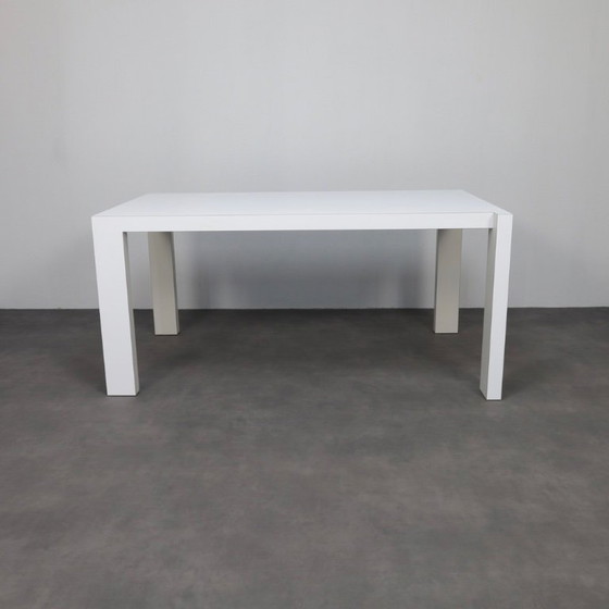 Designed by Italian artist and designer Giampaolo Babetto for the Dutch manufacturer Pastoe, the “Quadro” table embodies minimalist precision and architectural clarity. Executed in lacquered wood with a perfectly proportioned rectangular top and sharply defined legs, the piece reflects Babetto’s background in goldsmithing—where geometry, proportion and light are treated with equal importance. The table’s visual purity and balanced construction make it both sculptural and serene, aligning with Pastoe’s enduring ethos of functional refinement.