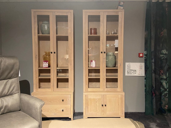 The Novembre cabinet from Raanhuis is 80 cm wide and 220 cm high. The rustic oak is clear in color with a white oil finish. The cabinet doors are €2550, and the drawers are now €1275. Sold.