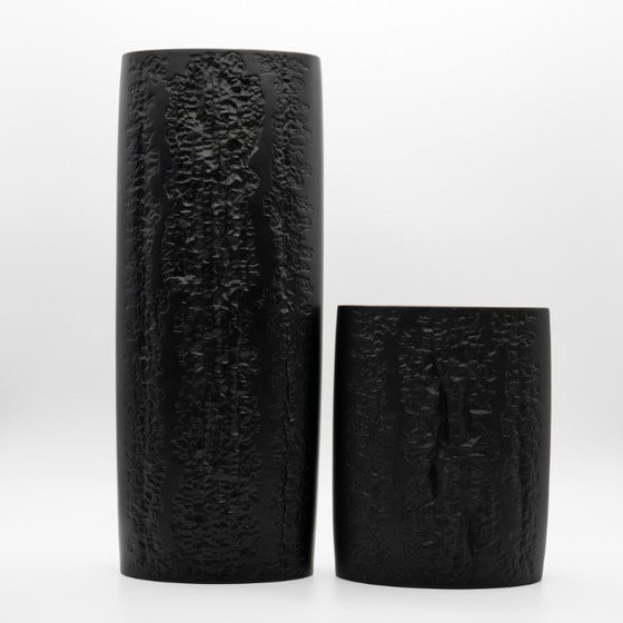 Op Art Floor Vase Pair – A Rare Duo of Sculptural Illusion (H 38.5 + 20 cm)
