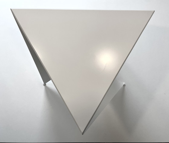 This well-designed side table is made of solid steel and is of heavy quality. The table has been awarded by the Dutch foundation "Goed Wonen," which annually presents awards for outstanding and innovative designs. We understand why. This table boasts a playful design that never ceases to amaze. It has an origami-like shape, constructed from four similar triangular metal plates.