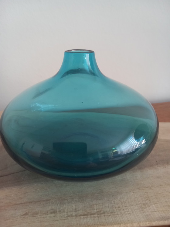 Title: Rare Small Salong Vase – Design by Johanna Jelinek – Mouth-Blown Glass – Turquoise Blue – 1990