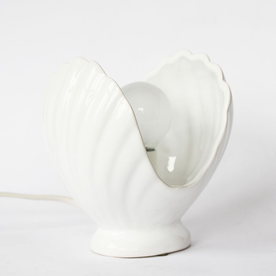A cute and elegant small clam-shaped ceramic lamp, perfect for adding a touch of sophistication and visual interest to any space. Its compact size makes it versatile, while the shell design allows light to diffuse softly upwards, creating beautiful patterns on nearby walls or furniture.