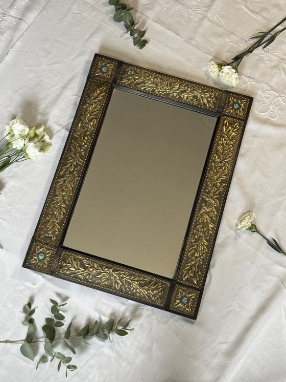 Magnificent mirror with a frame richly adorned with gilded floral motifs, enhanced by turquoise-style cabochons at the corners 💙