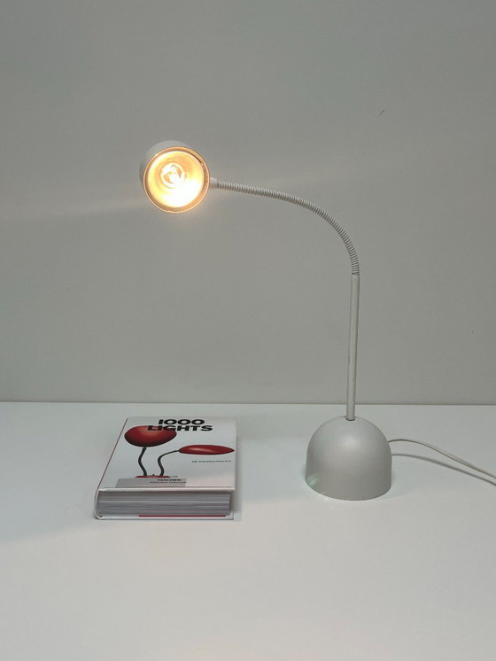 Beautiful white WOJA desk or bedside lamp in excellent condition. A true 1970s design piece that still shines today – stylish, timeless, and in perfect working order. WOJA is best known for its iconic spiral lamp with a milky glass globe, but this model is also a must-have for any vintage design lover.