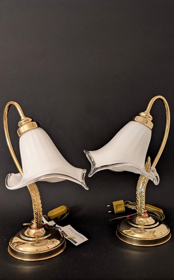 🔸 One of the two lamps has a slight irregularity on the edge of the lampshade, due to the artisanal glasswork.