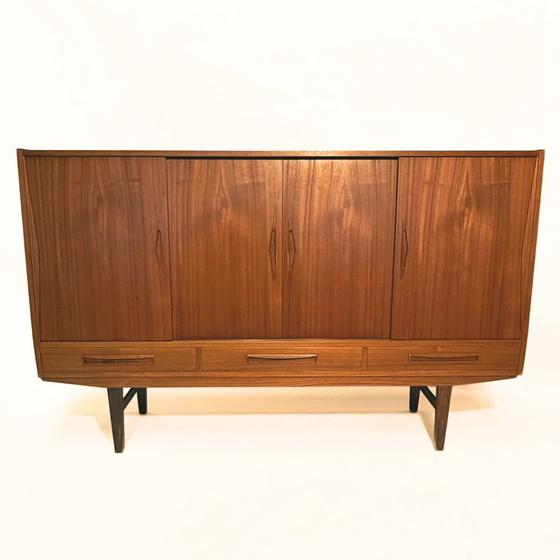 Restored vintage mid-century Danish high board with a bar compartment, and plenty of storage space.