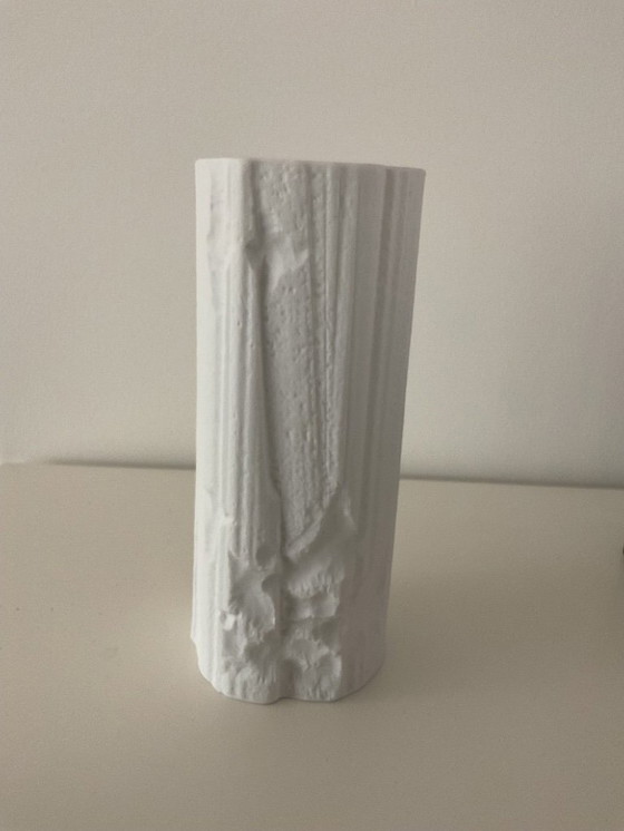 Retro vintage (60s-70s) Hutschenreuther vase of matte cookie porcelain with embossed texture. Height 18cm, diameter 7,5cm. Condition flawless, no signs of use.