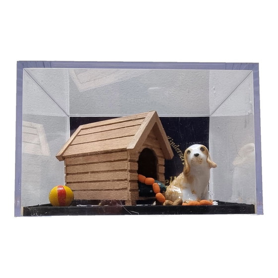 Reutter Porzellan collectible in box, from the 1990s. Beautiful and still in original packaging, a Beagle with doghouse made by the company Reutter Porzellan. For the collector or for a dollhouse to use. Dimensions: 11 cm wide, 8 cm deep and 7 cm high. Nr.6360.13