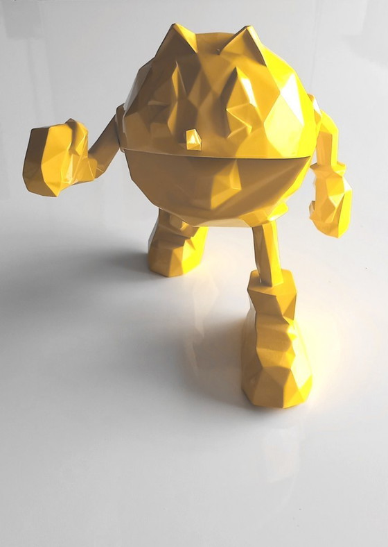 Designed by Richard Orlinski, signed in the plate. Hand-painted resin sculpture with a lacquered, glossy finish. Official yellow PAC-MAN sculpt under license from © Pac-Man™ and BANDAI NAMCO Entertainment Inc. Comes in the original box. Orlinski is one of the best examples of an artist combining contemporary art and popular culture. And when you think of icons of popular culture, we can honestly say that PAC-MAN has his place in the Hall of Fame. These are more than just figures, they are pieces you normally see in art galleries. Well, today you can have this PAC-MAN for yourself, a PAC-MAN like you've never seen him before; beautiful and elegant, but also reminiscent of the original pixelated PAC-MAN.