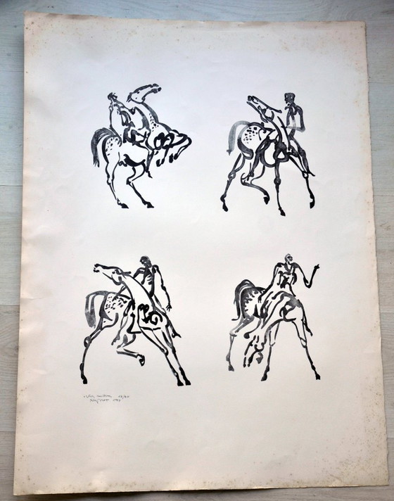 ConditionGoodColorsBlackMaterialPaperNumber of items1First ownerYesOrientationPortraitArt sizeMediumHeight74 cmWidth55 cmSigns of usageStains