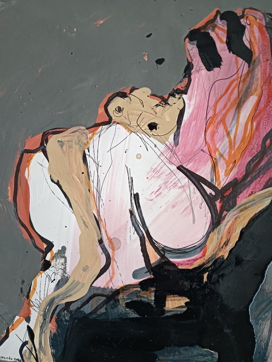 ConditionExcellentColorsGrey, Orange, Black, PinkMaterialPaperNumber of items1StyleAbstractArtistsRob JacobsFirst ownerYesHeight42 cmWidth32 cm