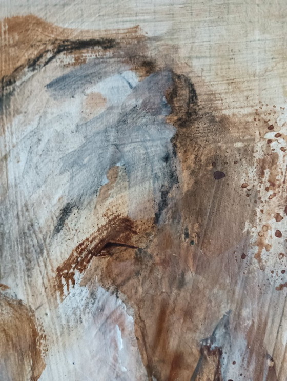 Discover the enchanting world of abstract art with this unique work by Rob Jacobs, titled "Model Nude." This painting captures the essence of the human form in a fluid and expressive style, where earthy tones and subtle brushstrokes create a sense of depth and movement.
