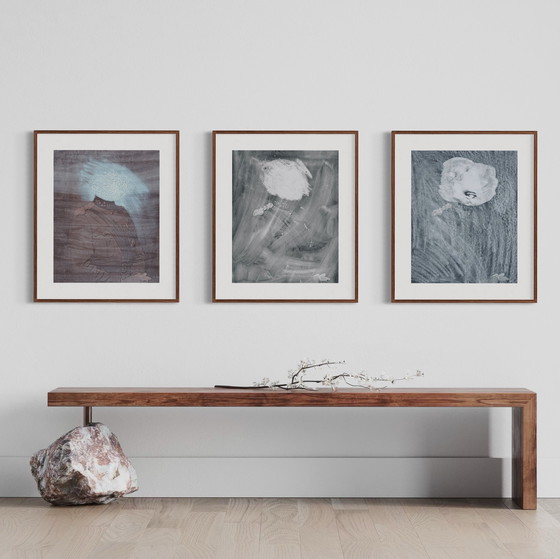 - Third painting** : The face is almost entirely erased, leaving only a ghostly silhouette.