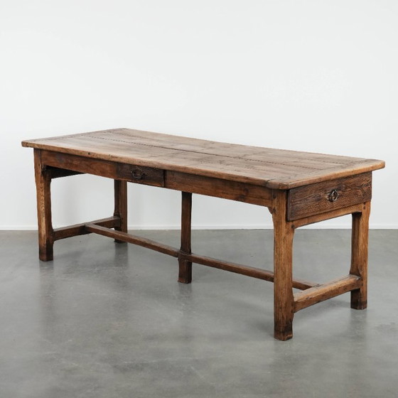 We believe that no interior should be complete without a beautiful antique dining table! This fantastic French dining table is made of fruitwood and dates back to the late 18th century. It's packed with wonderful original details and pairs perfectly with both antique and modern dining chairs. The table comes complete with three drawers, offering ample storage space. Due to its considerable age and years of responsible use, it has acquired normal signs of wear, but that doesn't make it any less beautiful—quite the opposite! Structurally, it's in good condition and ready to use. Will it be in your home soon?