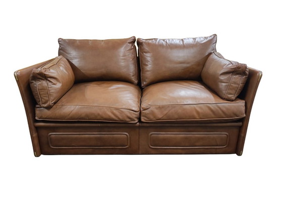 Beautiful exclusive sofa by Roche bobois. 2zits. France. Upholstered with the best leather and inlaid with gold copper pieces.