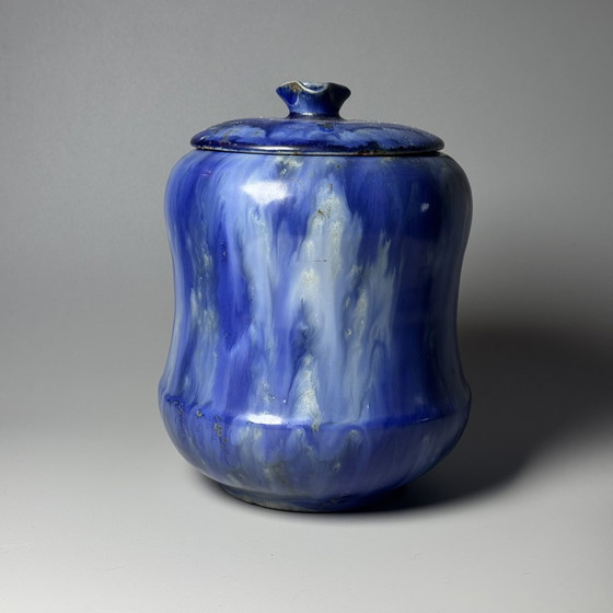 Roger Guérin Art Deco Lidded Jar – Rare Form, Cobalt Blue Glaze