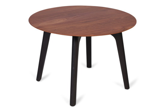 Rolan coffee table by Leolux / size Ø 55x37 hg / top walnut stain M2100 natural matt / legs epoxy The images shown are the actual representation of the product.