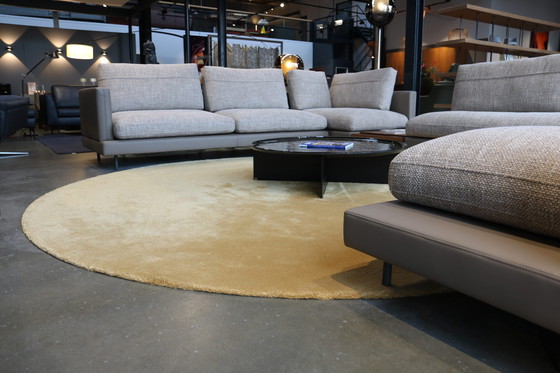Rolf Benz Braun Elementi Rug - ø300 Rolf Benz has developed a collection of rugs in collaboration with Braun, fully in line with the brand's characteristic style and quality. The Elementi rug, made of 70% wool and 30% tencel, combines a soft texture with a subtle sheen for a luxurious look. This round rug, in a warm yellow shade, has a diameter of 300 cm. Product details: * Brand: Rolf Benz x Braun * Model: Elementi * Colour: 451 warm yellow * Dimensions: ø300 cm * Pile height: 15 mm. * Pile type: cut pile * Material composition: 70% wool, 30% tencel