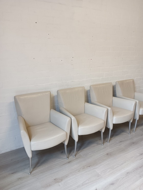 Experience the luxury and comfort of these Rolf Benz leather chairs, a paragon of modern design and craftsmanship. Upholstered in high-quality cream leather, these chairs exude elegance and sophistication and fit perfectly into a contemporary interior.