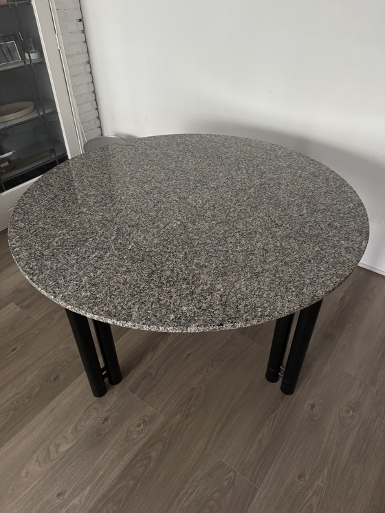 Elevate your dining experience with this exquisite round dining table, featuring a luxurious granite top that exudes elegance and durability.