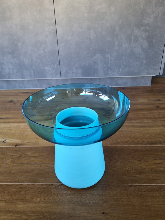 Discover the exquisite Rosenthal Limited Edition: Collana by Sebastian Herkner, a masterpiece of modern glass design. This exclusive vase, numbered 11 of only 60 pieces, embodies the perfect symbiosis of form and function and is sure to become a highlight in any room. The harmonious combination of clear and opaque glass in a captivating blue lends this work of art unparalleled elegance and depth.