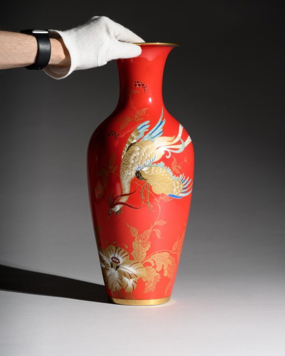 Rosenthal Porcelain Vase – Chinoiserie Phoenix Decor in Red & Gold – Germany, ca. 1938