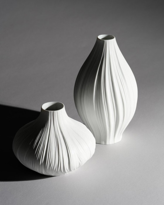 Rosenthal Plisse Vase Duo Martin Freyer White Porcelain Studio-Line Germany