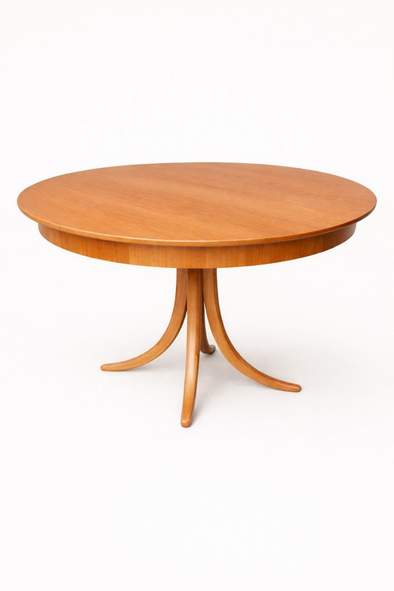 This round extendable dining table combines elegance with functionality and is a beautiful addition to any dining room. The warm cherry wood exudes a timeless charm that complements a variety of interior styles.