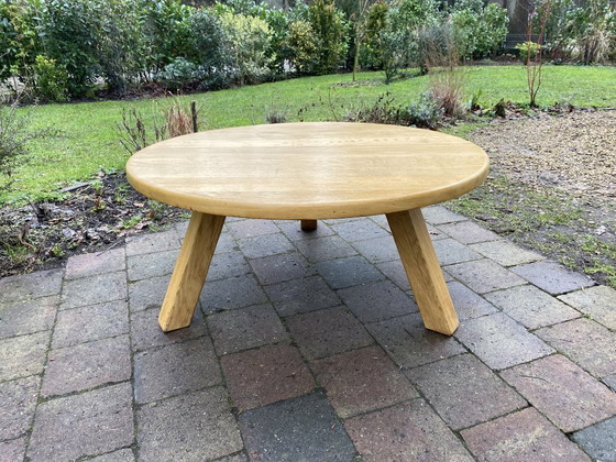round coffee table, round table 100 cm, solid wood, japandi table, Danish design, Scandinavian design, arts and crafts, brutalist table, brutalism furniture, wabi sabi, minimalist interior, vintage coffee table, wooden table, design table, mid century modern, organic design