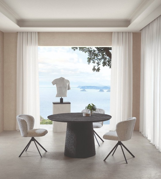 Discover the round Argus table, a masterpiece of craftsmanship and design. With a diameter of 130 cm, this table offers the perfect balance between functionality and style. Crafted from sustainable acacia wood brushed in black, the Argus table complements any interior style. The striking, ribbed mango wood leg adds a unique and distinctive touch. Ideal for cozy dinners and stylish gatherings, the Argus table brings a touch of refinement and personality to your space.