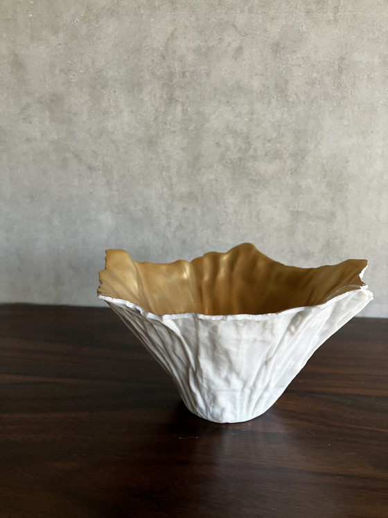 Porcelain bowl with gold interior. Bought at M.E.K. Amsterdam. Frayed edges are part of the design.