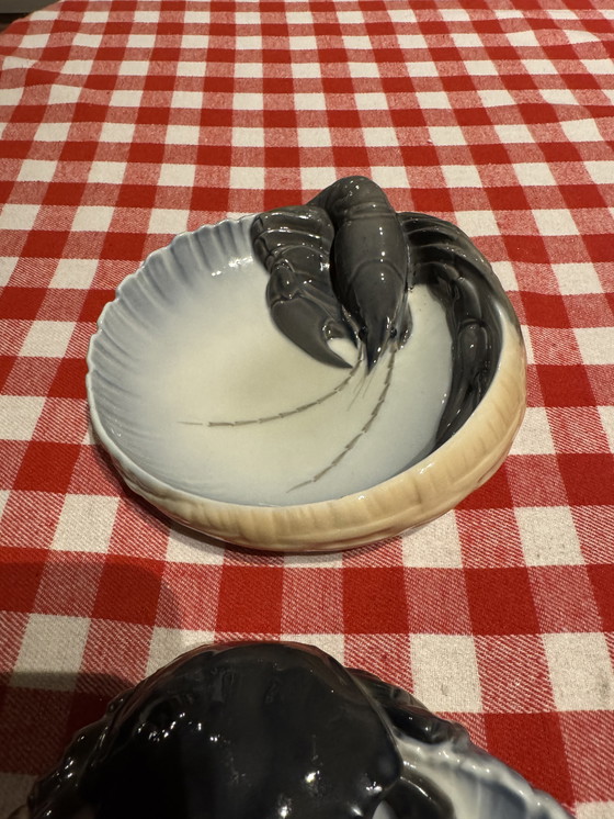 - Crafted from fine porcelain, this dish features a beautifully detailed lobster motif, showcasing the intricate design and attention to detail synonymous with Erik Nielsen's work.