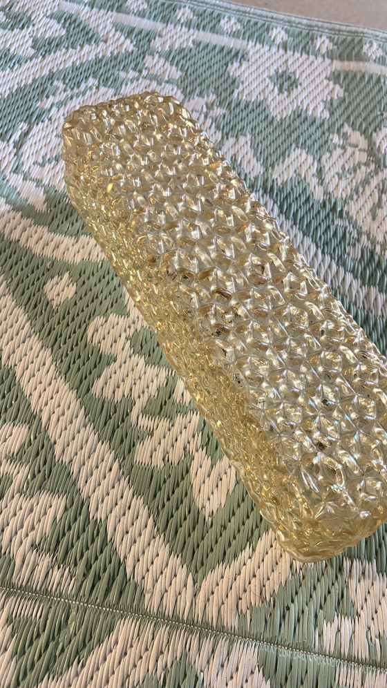 Add a touch of vintage flair to your interior with this beautiful glass decoration by Rudolf Zimmermann Bamberg. The golden glass exudes elegance and catches the light in an enchanting way. Perfect for a sideboard or as a centerpiece on your coffee table.