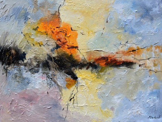 Discover "Sahara," a captivating abstract artwork that evokes the warmth and vastness of the desert. Vibrant shades of orange and yellow blend harmoniously with touches of blue and black, creating a striking contrast that draws the eye and stimulates the imagination.