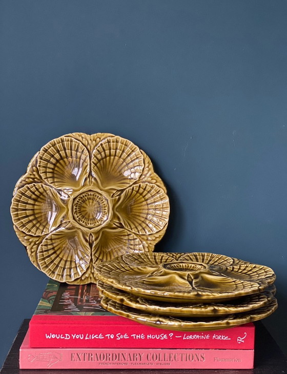 Beautiful set of vintage French oyster plates. Made in France by Sarreguemines in the first half of the 1900s.