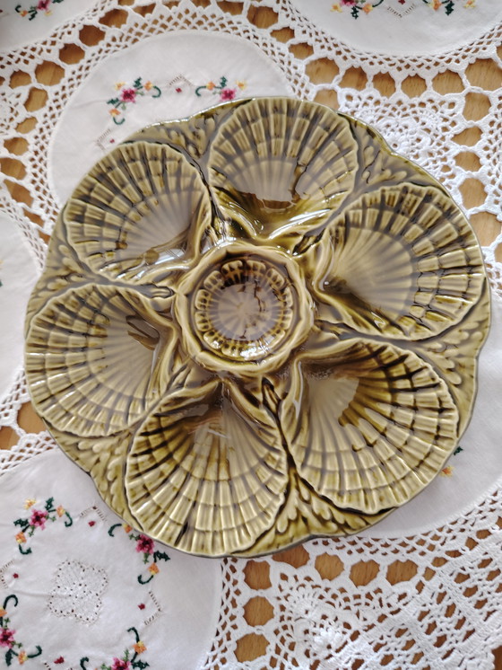 French vintage faience, oyster plate, serving plate, serving platter, starter plate