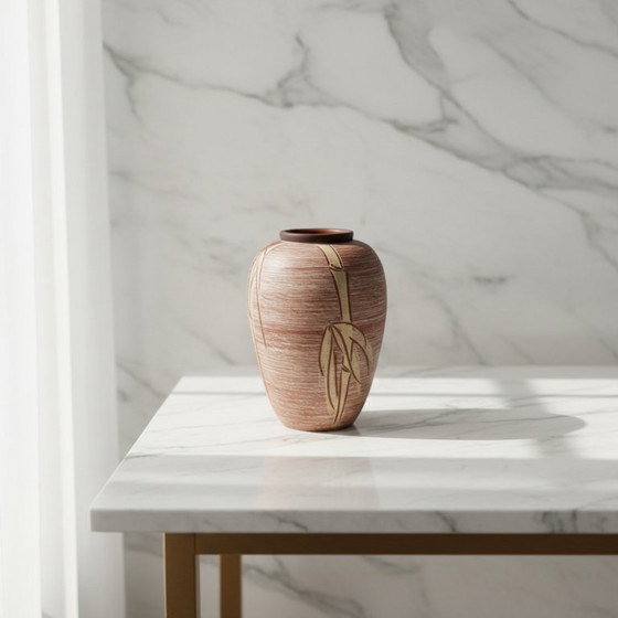 Discover the timeless elegance of this 1950s Sawa vase, a beautiful example of West German ceramic art. With its warm brown tones and subtle cream accents, this vase adds a touch of refinement to any interior.