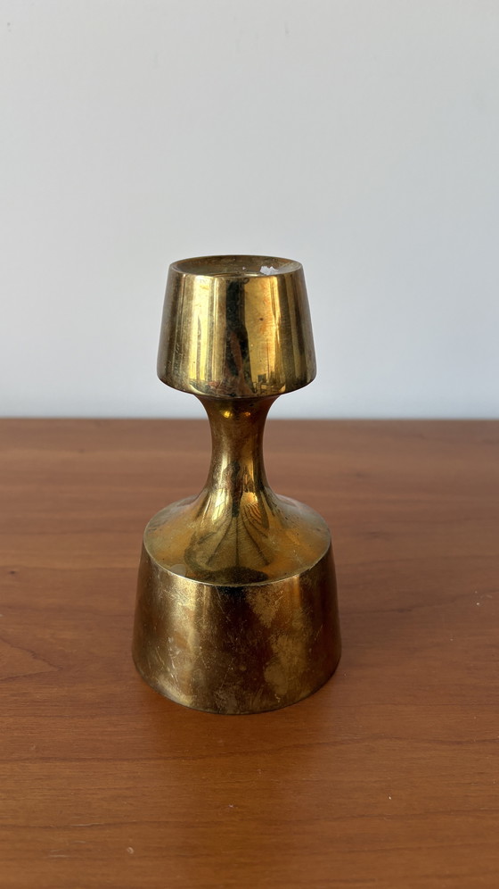 Illuminate your space with the timeless elegance of this Scandinavian brass candlestick from Dansk Design, crafted in the 1970s. This piece exudes a vintage charm that is both sophisticated and understated, with its golden hue adding a touch of warmth and luxury to any decor.