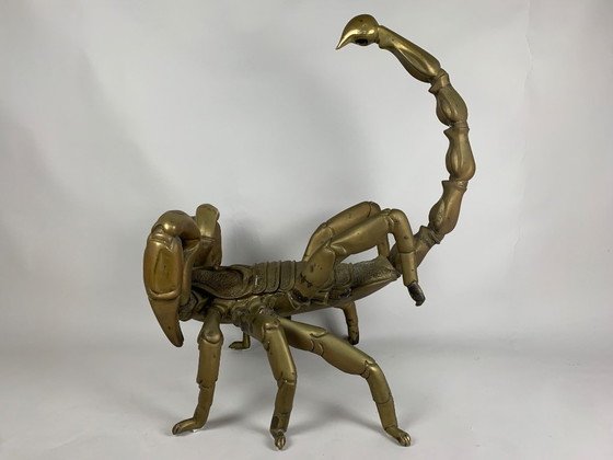 This unique scorpion coffee table is a striking piece of modern design from the 1970s, crafted from bronze. Its intricate detailing and bold shape make it a standout addition to any living space. Perfect for those looking to add a touch of the extraordinary to their home decor. The table's design is both artistic and functional, embodying the daring style of the era.
