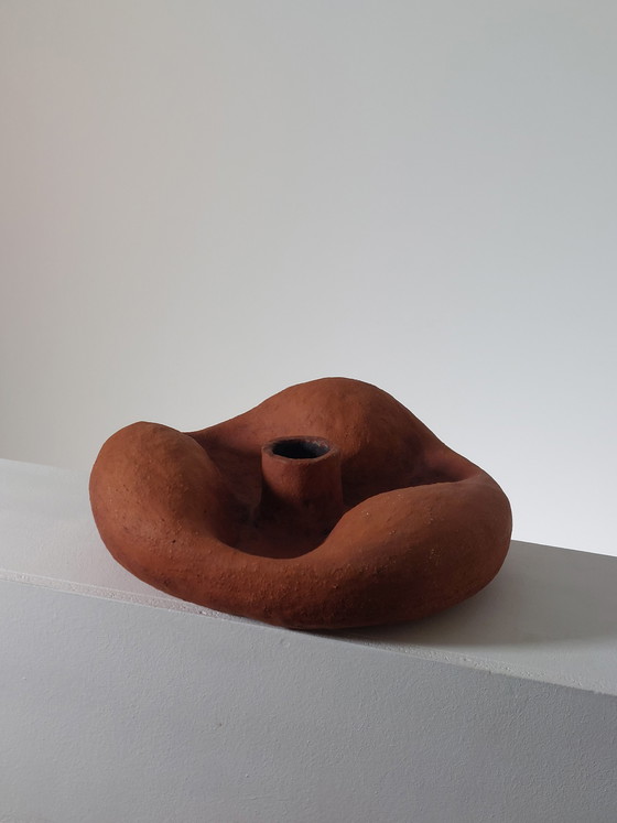 This unique sculptural vase from 1977 is a true masterpiece of craftsmanship. With its organic form, which gives the impression of having deflated it, it exists on the boundary between art and functional object. The warm, earthy color scheme draws the eye and lends an artistic touch to any room.