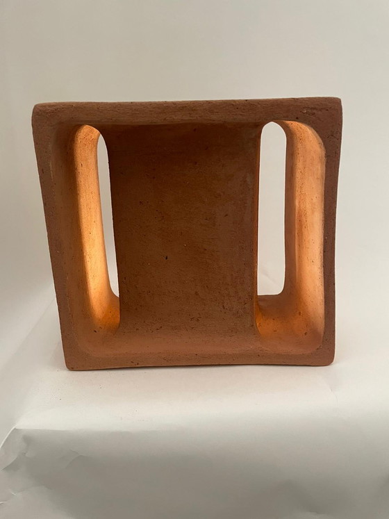The "Block" table lamp is made of high-temperature brown earthenware in the Brutalist style.