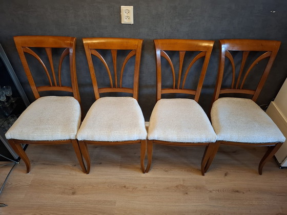 Beautiful walnut chairs from Selva, Italy. All still in good condition.