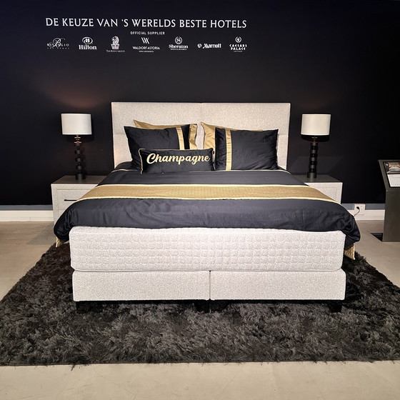 Serta Boxspring Lounge flat 180x210 with memory foam topper and 2 nightstands.