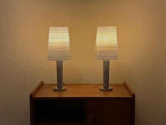 This pair of 90s Foscarini Lite Tavolo Grande lamps showcases sleek postmodern Italian design with a sculptural form and soft, diffused light. A true statement piece for any interior. Made of chroom and plastic, these lamps include an innovative fall slip mechanism ensuring the lampshade stays securely in position. Including lightbulbs.
